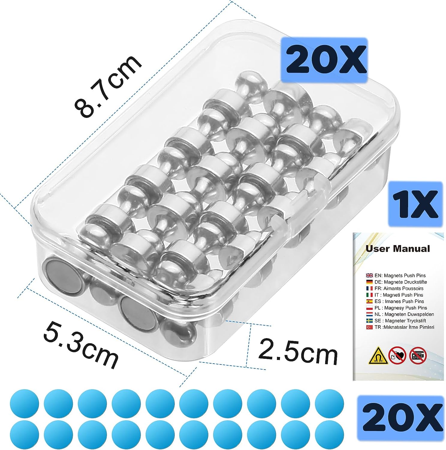 - 【20 Starke Magnete】Diemagnete für magnettafel besteht aus starkem Magnetmaterial - NdFeB, die Oberfläche ist vernickelt, rostfrei, korrosionsbeständig und sturzfest. Darüber hinaus ist der Boden des Magneten sehr glatt und hinterlässt keine Kratzer beim Verlassen anderer magnetischer Oberflächen.